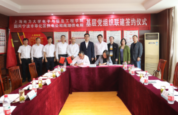 簽約儀式前,雙方就各自黨支部特色與亮點工作相互作了介紹,并就實現(xiàn)黨組織優(yōu)勢互補,以黨建促進業(yè)務(wù),構(gòu)建“資源共享、優(yōu)勢互補、互相促進、共同提高”的黨建工作新格局進行探討。隨后,上海電力大學(xué)電子電子與信息工程學(xué)院電子科學(xué)學(xué)科教工黨支部書記楊芳、莼湖供電所黨支部書記江仁國共同簽署了《基層黨組織聯(lián)建協(xié)議》。