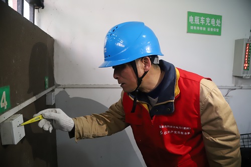 中國電力網(wǎng)訊 11月26日,國家電網(wǎng)浙江電力(鄞州)紅船共產(chǎn)黨員服務(wù)隊隊員來到位于鄞州區(qū)中河街道的峰景苑小區(qū)進行電動自行車充電樁線路安全巡查。