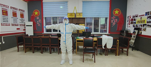 看著簡(jiǎn)單,但是實(shí)際操作起來屬實(shí)不易。在該處團(tuán)支部(青工委)書記講解完畢后,為了讓青工能夠切身感受穿戴防護(hù)服的過程,在參會(huì)的現(xiàn)場(chǎng)團(tuán)員青年中挑選了一名志愿者進(jìn)行了一次模擬穿脫防護(hù)服。青工李正陽在完成一整套防護(hù)服穿戴流程后已經(jīng)是大汗淋漓,他邊擦額頭的汗水邊感慨道:“這才是穿和脫就已經(jīng)累到出汗,那些一線醫(yī)護(hù)人員一穿就是十幾二十個(gè)小時(shí),太不容易了,為他們的敬業(yè)精神感到欽佩。”