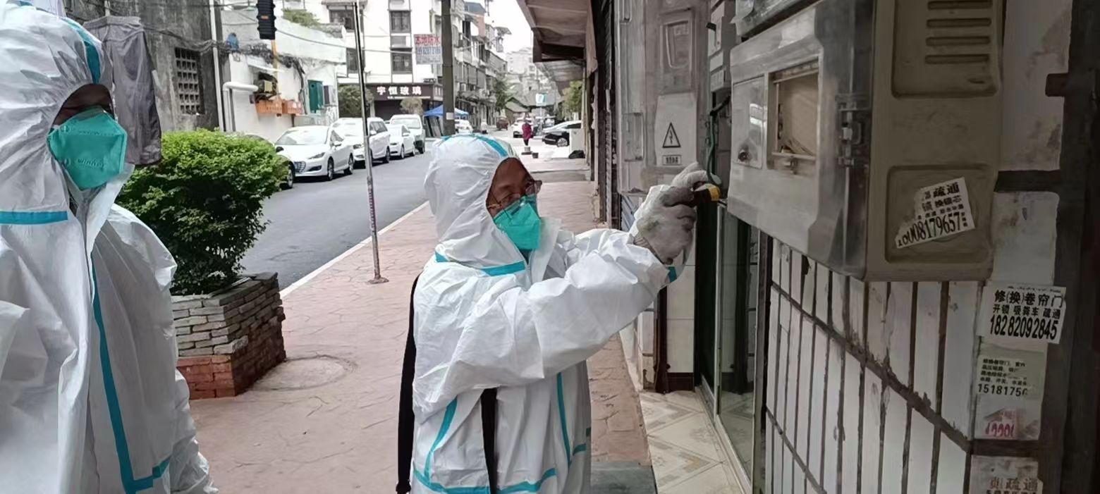 8月29日下午5時,龍門黨員突擊隊(duì)隊(duì)長伍曉萍在高風(fēng)險區(qū)曹家壩社區(qū)為客戶檢查處理故障。