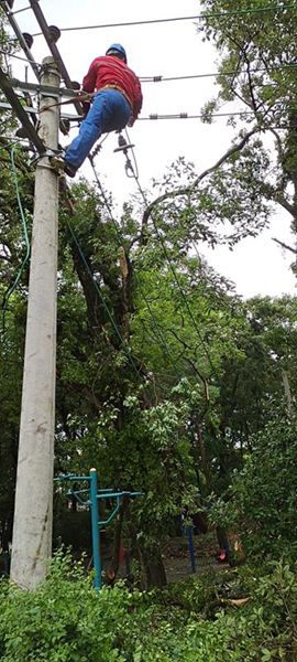 中國(guó)電力網(wǎng)訊 5月15日17時(shí)32分,雷暴天氣造成廣西富川縣朝東鎮(zhèn)、城北兩個(gè)鎮(zhèn)10千伏民主線等3條線路受損停電。接到了故障緊急搶修電話后,南方電網(wǎng)廣西新電力集團(tuán)富川縣公司朝東供電營(yíng)業(yè)所分成兩個(gè)搶修小組趕赴故障現(xiàn)場(chǎng)開展搶修工作。搶修人員通過巡查確定了故障點(diǎn)并立即開展搶修。在故障搶修現(xiàn)場(chǎng),趁著雨量減小的有利時(shí)機(jī),在確保安全的前提下,搶修人員分工合作,有條不紊的開展著搶修工作,有的人員將倒在線路上的樹木運(yùn)離現(xiàn)場(chǎng),有的人員登桿作業(yè)接線換瓷瓶。通過大家的共同努力,于5月16日晚20時(shí)46分完成搶修任務(wù),恢復(fù)了近5000個(gè)用電戶供電,以實(shí)際行動(dòng)踐行了“人民電業(yè)為人民”的宗旨。