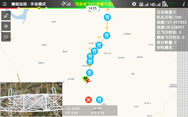 以往需要巡檢人員手動操作無人機進行巡檢工作,現(xiàn)在通過無人機自主巡檢系統(tǒng),可以實現(xiàn)管轄線路內(nèi)任意段的無人機自主飛行巡檢,巡檢人員一次性發(fā)出指令,無人機按照指令自主出發(fā)、自主巡檢、自主返回降落。在自主飛行過程中,畫面圖像會實時的回傳到地面操作平臺。巡檢人員進行軟件操作即可實現(xiàn)桿塔精細化巡視、樹障巡視、通道巡視、紅外測溫等其他巡視任務(wù)。以往需要人工視角或無人機視角來獲取線路通道情況,依靠的是人工主觀判斷,存在一定的誤判率。現(xiàn)在通過管控平臺進行三維點云數(shù)據(jù)處理,可以構(gòu)成一個三維的模擬現(xiàn)場環(huán)境的電力線,精確的給出線樹距離、面積、體積等,并生成檢測報告,大大減少了不必要的工作。以往需要巡檢人員回到辦公地點進行巡視結(jié)果匯報,現(xiàn)在在現(xiàn)場通過巡檢專業(yè)移動終端上報至平臺系統(tǒng)即可完成工作匯報,管控人員通過平臺報表和預(yù)警合理的安排工作人員,極大的提升了工作效率。