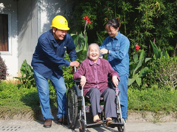 楓橋供電所員工陳仲立、許瑩到諸暨楓橋敬老院看望老人并聊家常