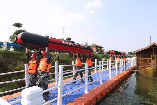 國網(wǎng)河南信陽淮濱縣供電公司員工開展防汛應(yīng)急演練。