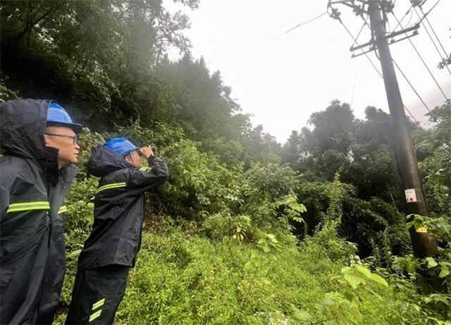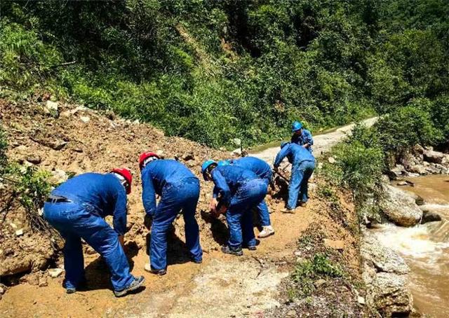 國網(wǎng)陜西漢中供電公司員工清理滑坡點,打通電力搶險通道。