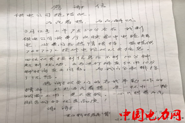 中國電力網(wǎng)訊 我看你們是真正的好人。”3月12日,國網(wǎng)蒙城縣供電公司開發(fā)區(qū)中心供電所城市營業(yè)大廳里,一位“不速之客”握著李雪梅主仼的手連聲道謝;來客是一里白新村居用電戶民曹澤,今天上午特地過來感謝開發(fā)區(qū)中心供電所城市營業(yè)大廳幫助他家檢修緊用10分鐘時(shí)間查出問題。這是國網(wǎng)蒙城縣供電公司營業(yè)廳全部恢復(fù)營業(yè)辦理第一件事。