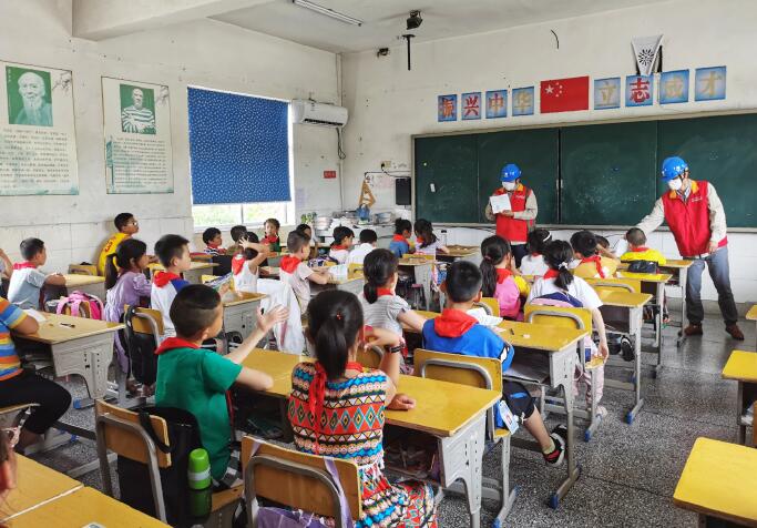中國電力網(wǎng)訊 6月16日,國網(wǎng)射陽縣供電公司黨員服務(wù)隊(duì)走進(jìn)射陽縣海通小學(xué),對(duì)學(xué)校用電線路、設(shè)備開展隱患排查,并為孩子們上了一堂精彩有意義的電力安全課。