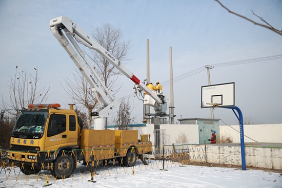 中國電力網(wǎng)訊 1月5日,在濰坊壽光市紀(jì)臺鎮(zhèn)堠子坡村,國網(wǎng)壽光市供電公司帶電作業(yè)人員在寒潮來臨之前,對該村存在安全隱患一臺250千伏安變壓器更換跌落開關(guān),及時消除設(shè)備運(yùn)行隱患,保障迎峰度冬期間居民用電無憂。