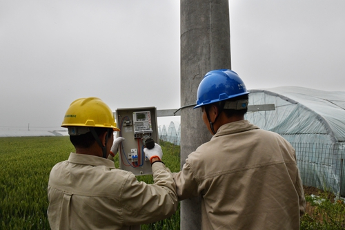 中國(guó)電力網(wǎng)訊 5月12日,江蘇連云港東海縣供電公司黃川供電所員工在該鎮(zhèn)桃李村西湖草莓種植園供電線路附近,為村民草莓大棚灌溉用電接線裝表。當(dāng)下正值草莓秧苗結(jié)果沖刺期,黃川供電所接到農(nóng)戶用電申請(qǐng)后,立即進(jìn)行勘察接電,保障農(nóng)戶大棚及時(shí)灌溉用電。