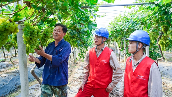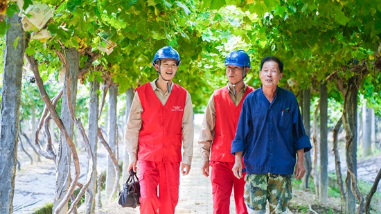 葡萄的灌溉、保鮮等都需要穩(wěn)定可靠的電力供應,為此國網安吉縣供電公司開辟“綠色服務”通道,為農戶用電提供更快速、便捷的服務。一方面,組織紅船共產黨員服務隊主動上門開展“零距離”服務,對葡萄園區(qū)、儲存冷庫、灌溉水泵等涉及果園用電的內外設備進行全面“體檢”,細致檢查供電線路、變壓器、配電箱,及時發(fā)現隱患進行消缺,改善用電環(huán)境,確保農戶用上“安心電”;另一方面,紅船共產黨員服務隊針對農戶安全用電意識薄弱的情況,加大安全宣傳力度,面對面向農戶講解安全用電知識,發(fā)放安全用電宣傳手冊,手把手指導農戶下載、注冊、使用“網上國網”app,增強農戶安全用電、科學用電的意識。