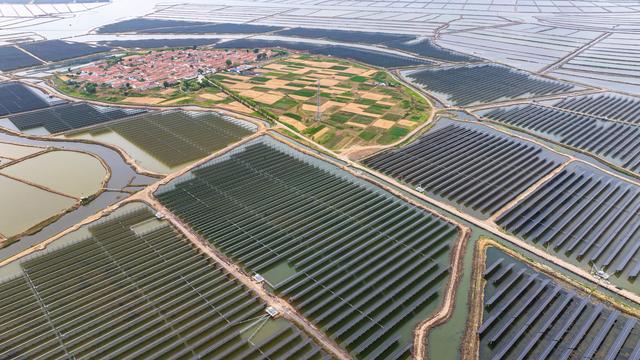 仲夏時(shí)節(jié),天藍(lán)海闊。走進(jìn)位于海陽(yáng)市行村鎮(zhèn)的桃林融進(jìn)200MW漁光互補(bǔ)項(xiàng)目現(xiàn)場(chǎng),整齊有序布列的新能源光伏矩陣熠熠生輝,蔚為壯觀。“上可發(fā)電、下可養(yǎng)蝦”的漁光互補(bǔ)組合,不僅繪就了綠色鄉(xiāng)村新圖景,還源源不斷為地方經(jīng)濟(jì)發(fā)展注入綠色動(dòng)能。