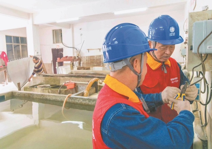 供電員工幫助宣紙生產(chǎn)企業(yè)消除用電線路安全隱患。 韋振 攝