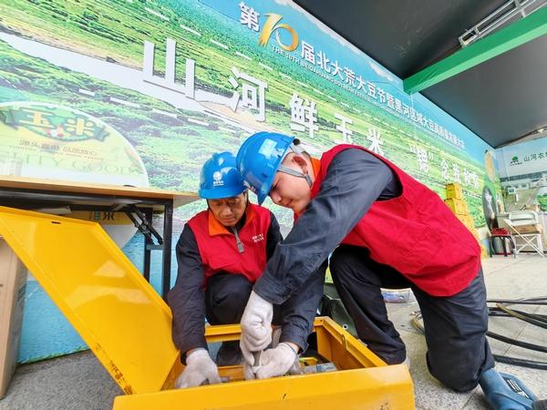 8月15日,第10屆北大荒大豆節(jié)如期而至,為確保大豆節(jié)順利開展,在大豆節(jié)現(xiàn)場,九三供電公司共產黨員服務隊提前對變壓器、配電箱、廣場上各攤位的臨時電源線路、電源插座等進行檢查,針對各種危險源,按區(qū)域、區(qū)段劃分防護人員,并派出400千伏安的發(fā)電車,全力保障大豆節(jié)期間電力安全、穩(wěn)定供應。8月初,九三供電公司主動對接北大荒集團有限公司,提前了解用電負荷需求,制定保障方案。