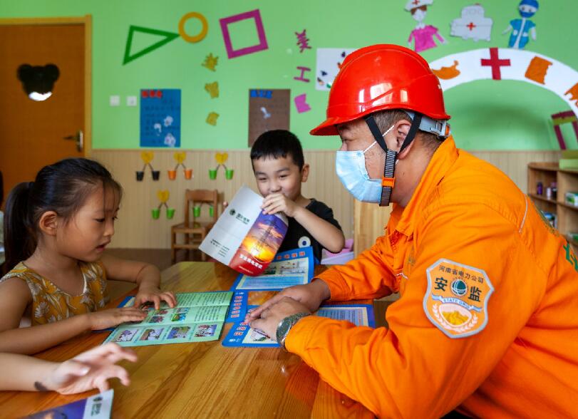 中國電力網(wǎng)訊 夏日頭伏,夜雨方停,微風(fēng)不燥。7月21日一大早,國網(wǎng)滑縣供電公司電力安全員頭戴安全帽,身披紅馬甲,走進(jìn)了社區(qū)幼兒園,開展“讓我的愛守護(hù)你”安全電力小課堂活動。