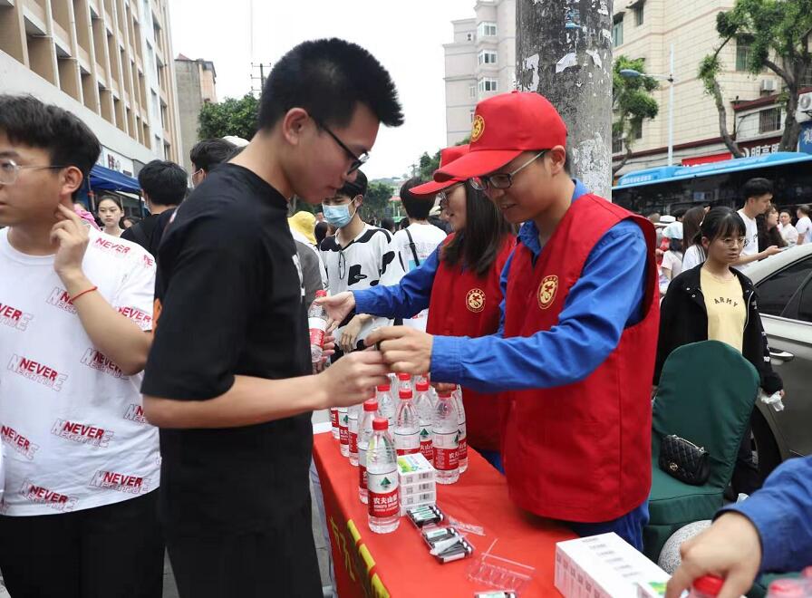 中國電力網(wǎng)訊 “同學(xué),加油!來喝點水,天氣悶熱,可以喝一支霍香正氣口服液預(yù)防中暑喲!”6月7日8時20分,十余輛送考公交車到達(dá)考點,愛心助考點迅速被一涌而出的考生包圍,國網(wǎng)南充市高坪供電公司志愿者們不斷向過往考生遞水、牛奶等。