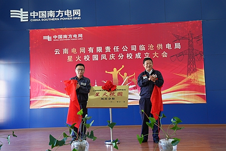 “我是臨滄鳳慶供電局員工,光榮的南網(wǎng)人,忠誠于南方電網(wǎng)事業(yè)······”隨著錚錚誓言,臨滄鳳慶供電局星火校園鳳慶分校揭牌儀式在鳳慶供電局本部404會議室隆重舉行。前期,鳳慶供電局對校領(lǐng)導(dǎo)議事機構(gòu)、政教處、教務(wù)處、教研組、總務(wù)處及一系列人員進行職責(zé)劃分并下發(fā),宣貫臨滄供電局臨星校園鳳慶分校創(chuàng)建方案,明確辦校校名及校訓(xùn),確立辦校理念及目標(biāo),明晰細化涵蓋班級培訓(xùn)實施內(nèi)容等。經(jīng)過緊鑼密鼓的籌備,臨星校園鳳慶分校在全場領(lǐng)導(dǎo)和與會同志們的共同見證下進行“星火校園鳳慶分校”揭牌,這標(biāo)志著臨滄鳳慶供電局星火校園鳳慶分校正式成立。