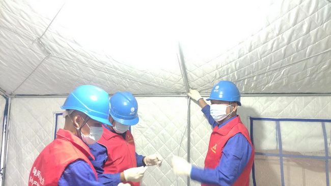 獲知信息后,共產(chǎn)黨員服務(wù)隊(duì)迅速在駐地準(zhǔn)備好照明燈、線材、插座等物資,向著廣場(chǎng)進(jìn)發(fā)。接線、固定、檢查,隊(duì)員們有條不紊的進(jìn)行著每一個(gè)環(huán)節(jié),不一會(huì),核酸檢測(cè)點(diǎn)帳篷里的燈被點(diǎn)亮。