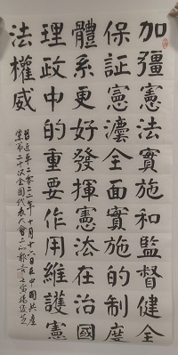 本次活動采取“線上+線下”形式全面開展,以豐富多彩的活動,深入學習宣傳貫徹習近平法治思想和習近平總書記關(guān)于憲法的重要論述。本次活動中,組織全處職工積極參加“學習宣傳貫徹黨的二十大精神,推動全面貫徹實施憲法”線上答題活動,共58人參加為期一周的線上答題;組織全體職工觀看烏海市及烏海供電公司普法宣傳視頻2個,營造出尊法學法守法用法的良好法治氛圍;通過樓宇內(nèi)張貼宣傳海報的方式使職工群眾隨時了解憲法知識,實現(xiàn)常態(tài)化普法宣傳,本次張貼憲法宣傳海報共6張;該處職工楊俊芝撰寫普法題材的書法作品1幅,青年職工制作電腦繪畫作品1幅以及隨手拍等,通過不同的方式宣傳學習憲法、民法典、電力法、公司法、中央企業(yè)合規(guī)管理辦法等,鼓勵大家要樹立牢固的法治觀念,成為憲法的自覺遵守者。