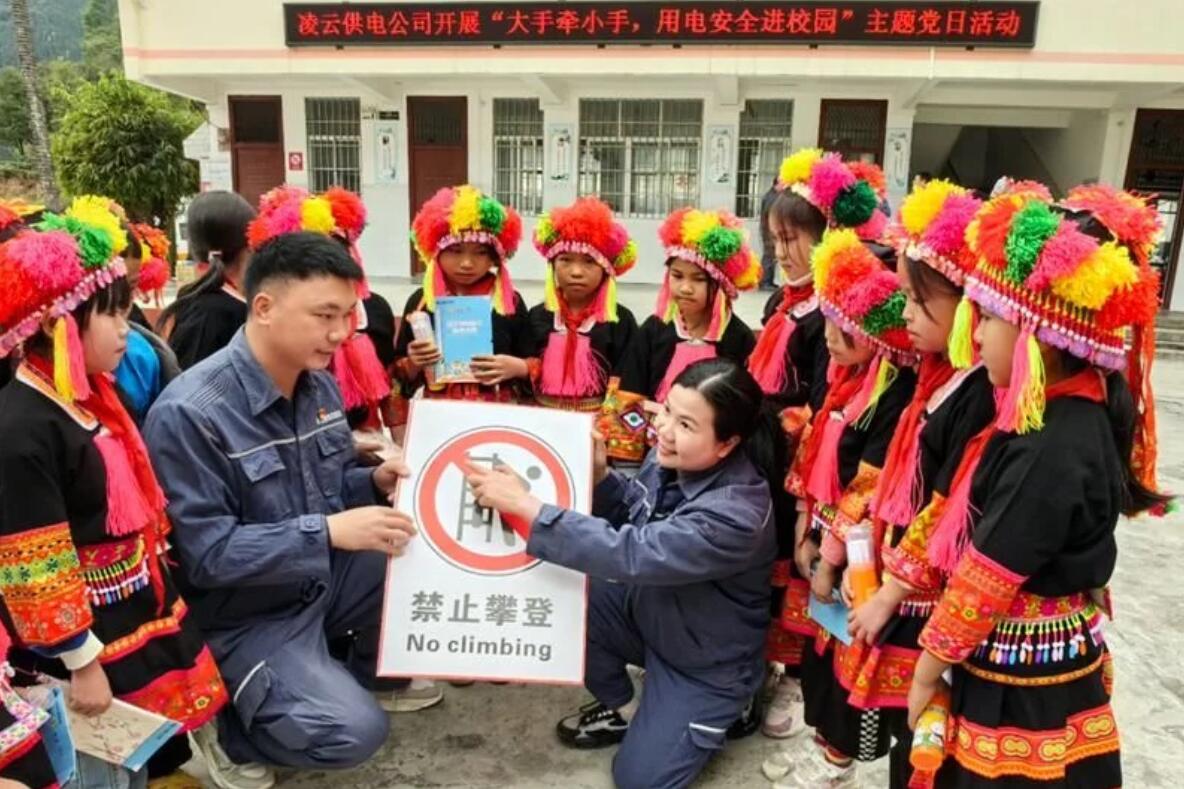 開(kāi)展“大手牽小手 用電安全進(jìn)校園”主題黨日活動(dòng)。凌云供電公司供圖
