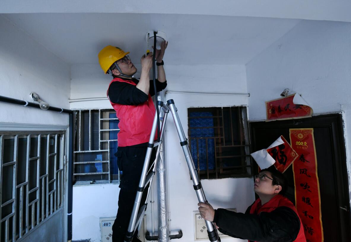 2022年,在日常維護(hù)中,志愿者發(fā)現(xiàn)有的居民將開關(guān)改裝在室內(nèi),樓道燈形同虛設(shè),而且之前樓道燈都是物業(yè)電或是家庭用電,電費(fèi)支出一直是一個(gè)問題。為此,團(tuán)隊(duì)創(chuàng)新思維,積極推動“點(diǎn)亮黑樓道2.0”項(xiàng)目,把前期單純的樓道燈維修與更換,轉(zhuǎn)變?yōu)橛锰柲軄硖鎿Q,通過光伏板、節(jié)能燈及紅外感應(yīng)裝置等方式來照亮樓道,從根本上解決“黑樓道”問題。