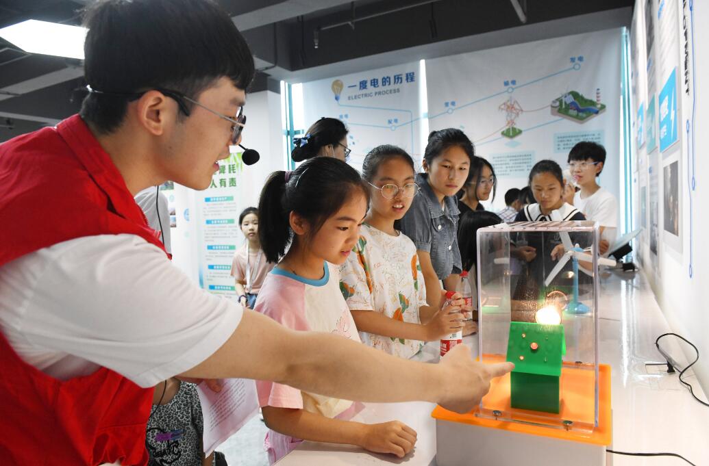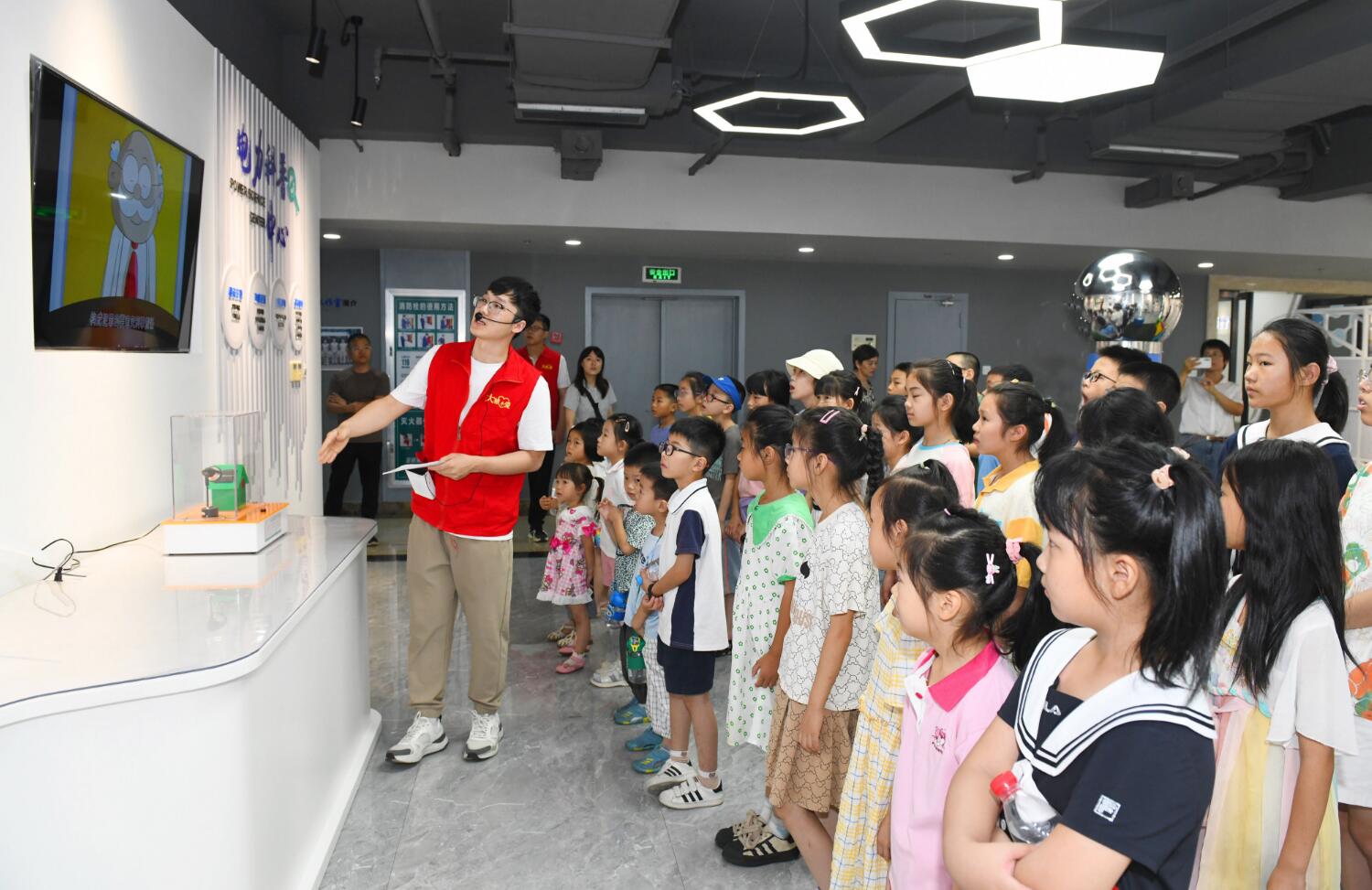 中國電力網訊 (通訊員 苗云夢)“小朋友們知道一度電是怎么來的嗎?”7月14日上午,在國網余姚市供電公司新時代文明實踐基地內,該公司大城小愛志愿者張楊歡正給近30名學生講解一度電的故事,帶領他們在學習探索中感受安全用電的重要性。
