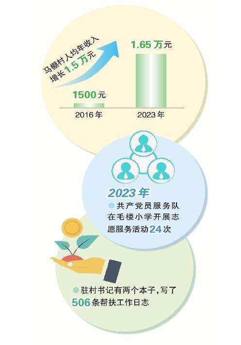 2023年,馬棚村人均年收入達(dá)到1.65萬元,比2016年增加1.5萬元。