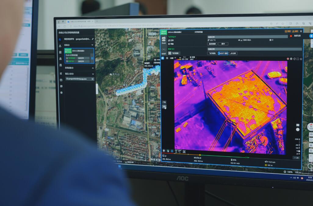 當天,安裝在110千伏丈亭變門前的無人機巢緩緩打開,一架無人機自動升空,沿著設(shè)定好的路線徑直飛去。同時,無人機拍攝的畫面成功回傳到公司運檢部電腦平臺,通過“實景”和“紅外”功能切換,可以直接監(jiān)測到是否有起火點,以“機器代人”極大提高了火災(zāi)隱患的排查效率。