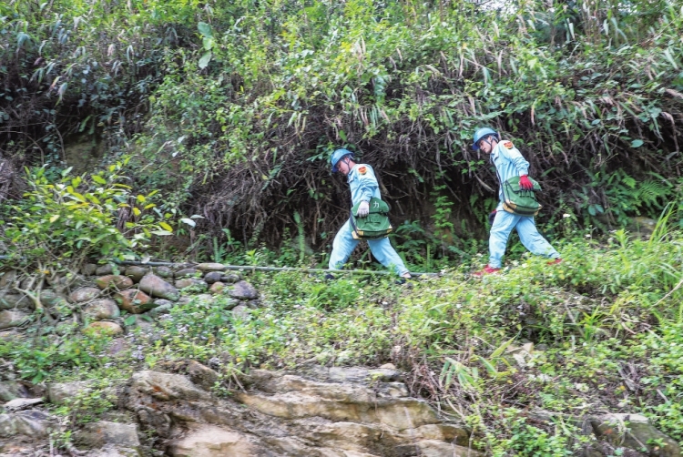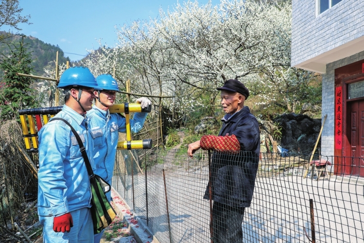 1. 黨員服務(wù)隊(duì)隊(duì)員在花海中巡視維護(hù)供電線(xiàn)路。