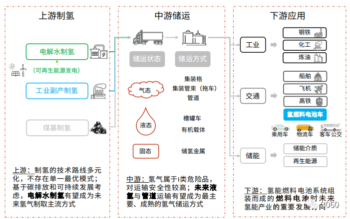 氫能產(chǎn)業(yè)鏈主要由上游制氫—中游儲運—下游應(yīng)用組成。