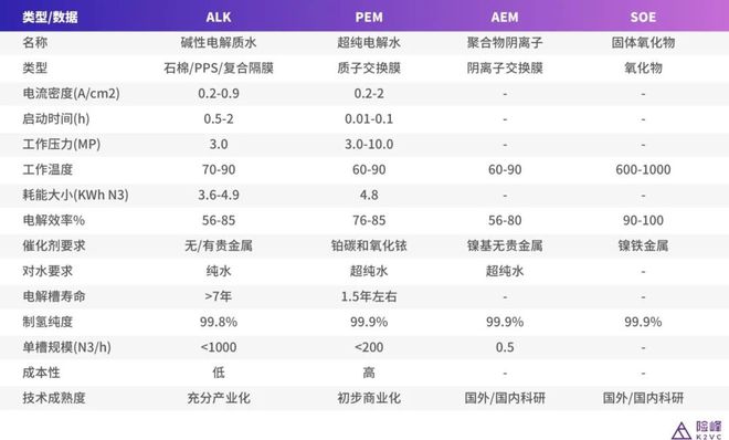 圖表:四種電解水制氫技術(shù)對(duì)比