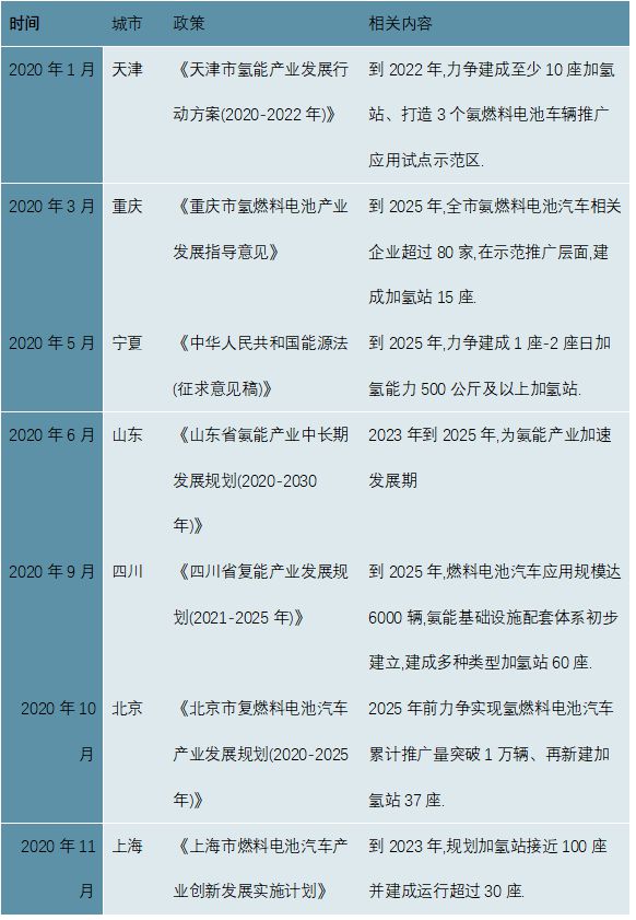 自2020年以來,已有北京、上海、廣東、浙江等16個省市先后制定了氫燃料電池汽車產(chǎn)業(yè)相關(guān)政策和規(guī)劃,對加氫站的規(guī)劃建設(shè)、氫燃料電池汽車的推廣應(yīng)用、核心產(chǎn)業(yè)鏈的布局等都進行了詳細布局。