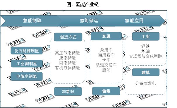 目前氫能產(chǎn)業(yè)已經(jīng)開始形成“制、儲、運、用”四大環(huán)節(jié),氫能的利用方式逐漸多元化。上游制取環(huán)節(jié),目前主要有化石能源制氫、工業(yè)副產(chǎn)氫和電解水制氫等方式;中游儲運環(huán)節(jié)存在氣態(tài)、液態(tài)、固態(tài)等方式,加氫站等基礎(chǔ)設(shè)施建設(shè)也是重要部分;下游應(yīng)用環(huán)節(jié),當前氫能主要應(yīng)用在工業(yè)領(lǐng)域,未來有望擴展為交通、工業(yè)、建筑、儲能等多領(lǐng)域。