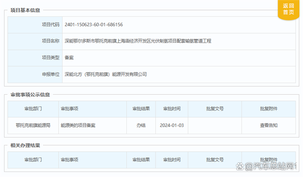 近日,深能鄂爾多斯市鄂托克前旗上海廟經(jīng)濟開發(fā)區(qū)光伏制氫項目配套輸氫管道工程獲批,鄂托克前旗能源局就該項目發(fā)布《項目備案告知書》。本項目屬于深能鄂爾多斯市鄂托克前旗上海廟經(jīng)濟開發(fā)區(qū)光伏制氫項目配套輸氫管道工程,新建一條DN150mm輸氫管線,供氣流量約5000標方每小時,管線長度約2km,起于深能北方(鄂托克前旗)能源開發(fā)有限公司鄂爾多斯市鄂托克前旗上海廟經(jīng)濟開發(fā)區(qū)光伏制氫項目,止于潤陽悅達光伏裝備制造全產(chǎn)業(yè)鏈科技示范項目。