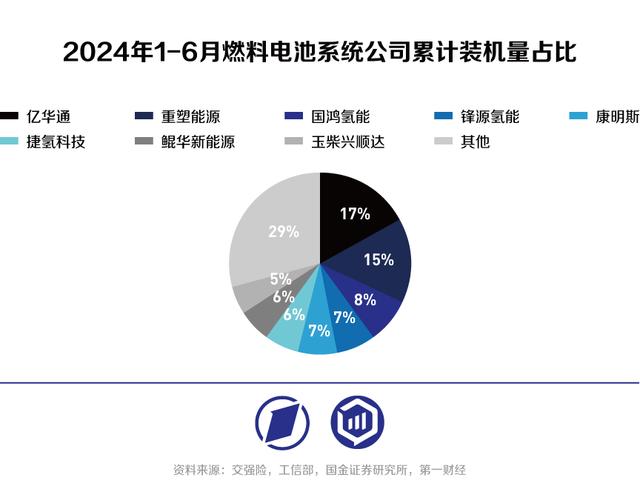 但燃料電池系統(tǒng)供應(yīng)商的競(jìng)爭(zhēng)格局仍在不斷變化中。2024年1-6月,國(guó)內(nèi)燃料電池系統(tǒng)公司累計(jì)裝機(jī)量排名,億華通作為龍頭繼續(xù)保持第一,2-6名分別為重塑能源、國(guó)鴻氫能、鋒源氫能、康明斯、捷氫科技,而2023年2-6名分別為捷氫科技、重塑能源、國(guó)鴻氫能、濰柴動(dòng)力、未勢(shì)能源。