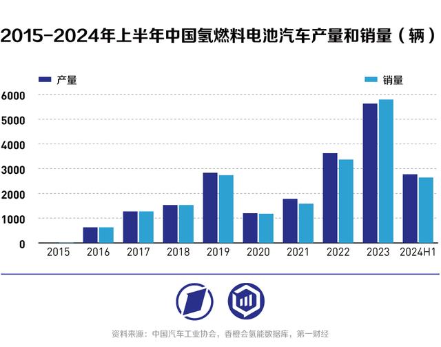 相比之下,中國(guó)市場(chǎng)逆勢(shì)增長(zhǎng),繼續(xù)保持全球燃料電池車產(chǎn)銷第一的地位。根據(jù)中國(guó)汽車工業(yè)協(xié)會(huì)數(shù)據(jù),2024年上半年全國(guó)氫燃料電池汽車產(chǎn)銷數(shù)據(jù)分別為2773輛和2644輛,同比增加11.1%和9.7%,均位列世界第一。