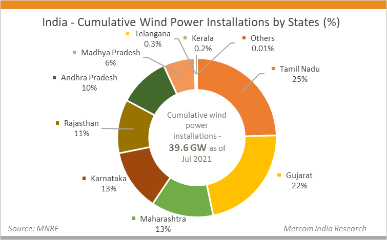 卡納塔克邦在2021年第二季度沒有安裝任何風(fēng)電裝機(jī)容量,但由于累計(jì)裝機(jī)量為 4.9 吉瓦,因此擁有13%的整體市場(chǎng)份額。拉賈斯坦邦在以4.3吉瓦的累計(jì)安裝量排在前五名,占市場(chǎng)份額的11%。