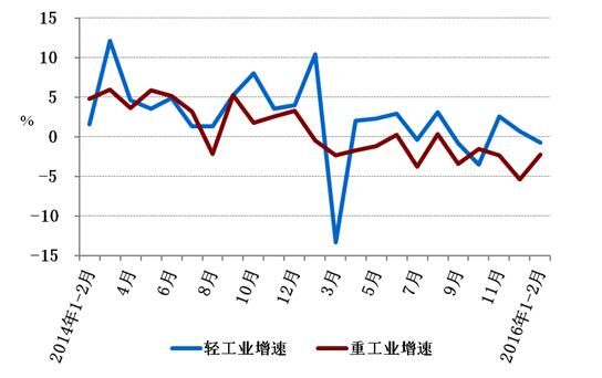 圖2: 2014年以來分月輕、重工業(yè)用電量增速情況