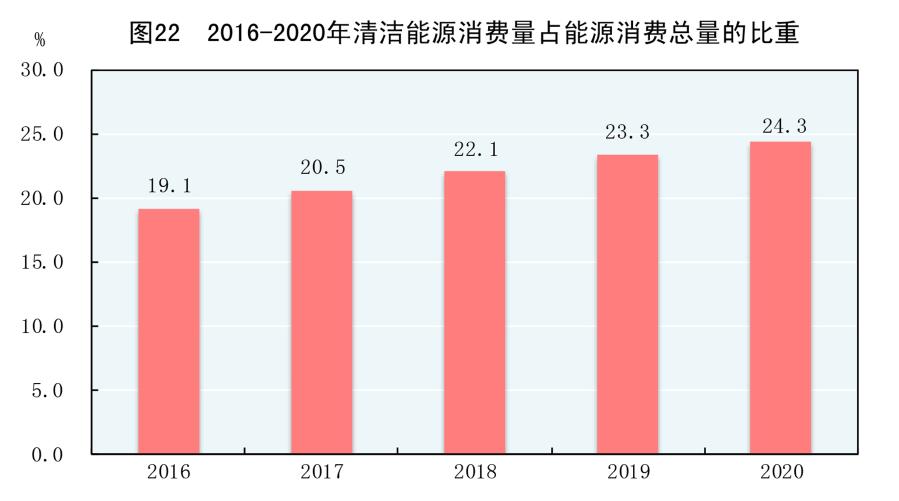 2016-2020年清潔能源消費量占能源消費總量的比重