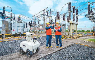 在迎峰度夏電力保供一線,國網嘉善縣供電公司運維人員利用智能機器人和紅外線測溫儀,通過“智能巡檢+人工巡視”方式,