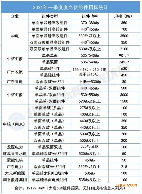 2021年2月9日,另一大央企華電發(fā)布2021年第一批單晶硅光伏組件集中采購(gòu)公告,其中,530W及以上規(guī)格組件招標(biāo)規(guī)模為5.6GW,占比高達(dá)80%。