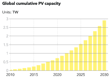 挪威船級社DNV在其最新的技術(shù)報告中表示,到2025年,全球太陽能裝機容量將翻一番,到2030年將翻兩番,達到3,000吉瓦。