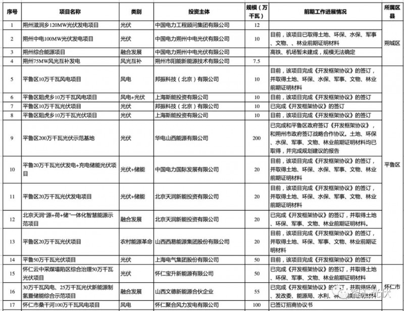 依托37個可再生能源規(guī)劃建設(shè)項目,24個新能源基地項目,總建設(shè)規(guī)模2318.5萬千瓦新能源配置,著力推進儲能助推可再生能源開發(fā)和利用系統(tǒng)性工程。重點完成金風科技150MW/300MWh獨立儲能電站項目、華電朔州平魯2200MWp平價光伏基地項目、國家電投中宇右玉500MW 風光互補+儲能示范項目、中廣核右玉高家堡鄉(xiāng)200OT 光伏+20MW/20MWh 儲能電站項目、懷仁市30萬千瓦風電25萬千瓦光伏新能源制氫暨儲能綜合示范項目、應縣100MW農(nóng)光互補光伏發(fā)電項目、國家能源集團山西龍源右玉能量生態(tài)光伏基地、平魯20萬千瓦光伏發(fā)電+充電儲能光伏項目、平魯區(qū)20萬千瓦光伏發(fā)電項目、北京邦振科技山陰200MW 光伏項目、右玉景能光伏示范項目、朔州綜合能源項目、北京天潤“源+荷+儲”項目、華能山陰30萬千瓦農(nóng)光儲結(jié)合生態(tài)修復示范工程項目等規(guī)?;椖拷ㄔO(shè)。