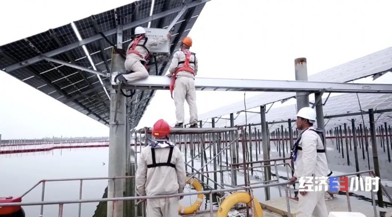 這個(gè)漁光一體光伏電站,光伏板能遮擋陽光,降低水面溫度,減少水分蒸發(fā)的同時(shí)抑制藻類生長,為魚蝦提供更好的生長環(huán)境。
