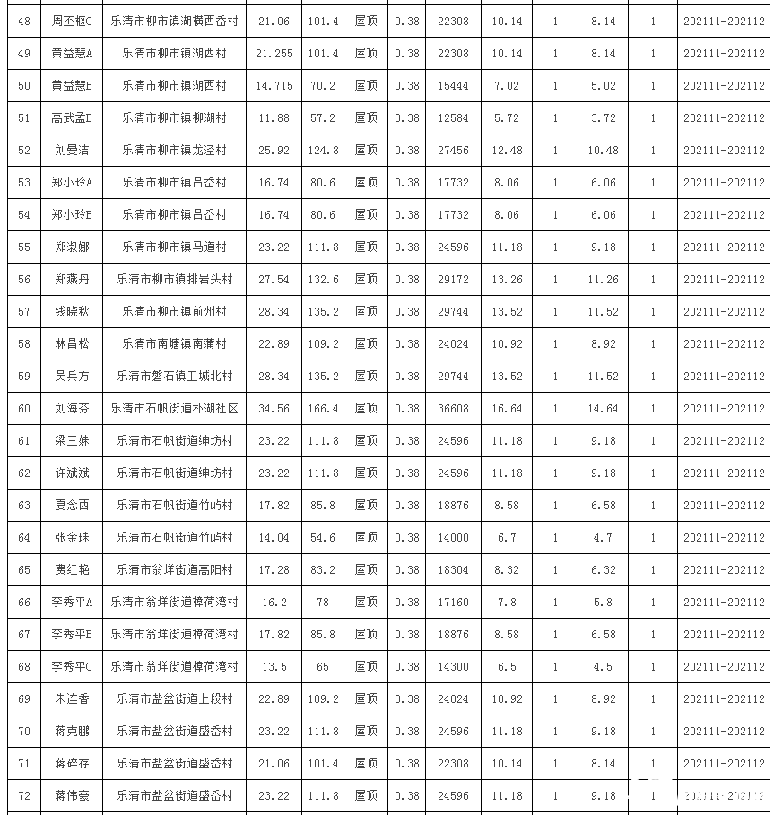 樂清市2021年第二十三批居民家庭屋頂分布式光伏發(fā)電項(xiàng)目表