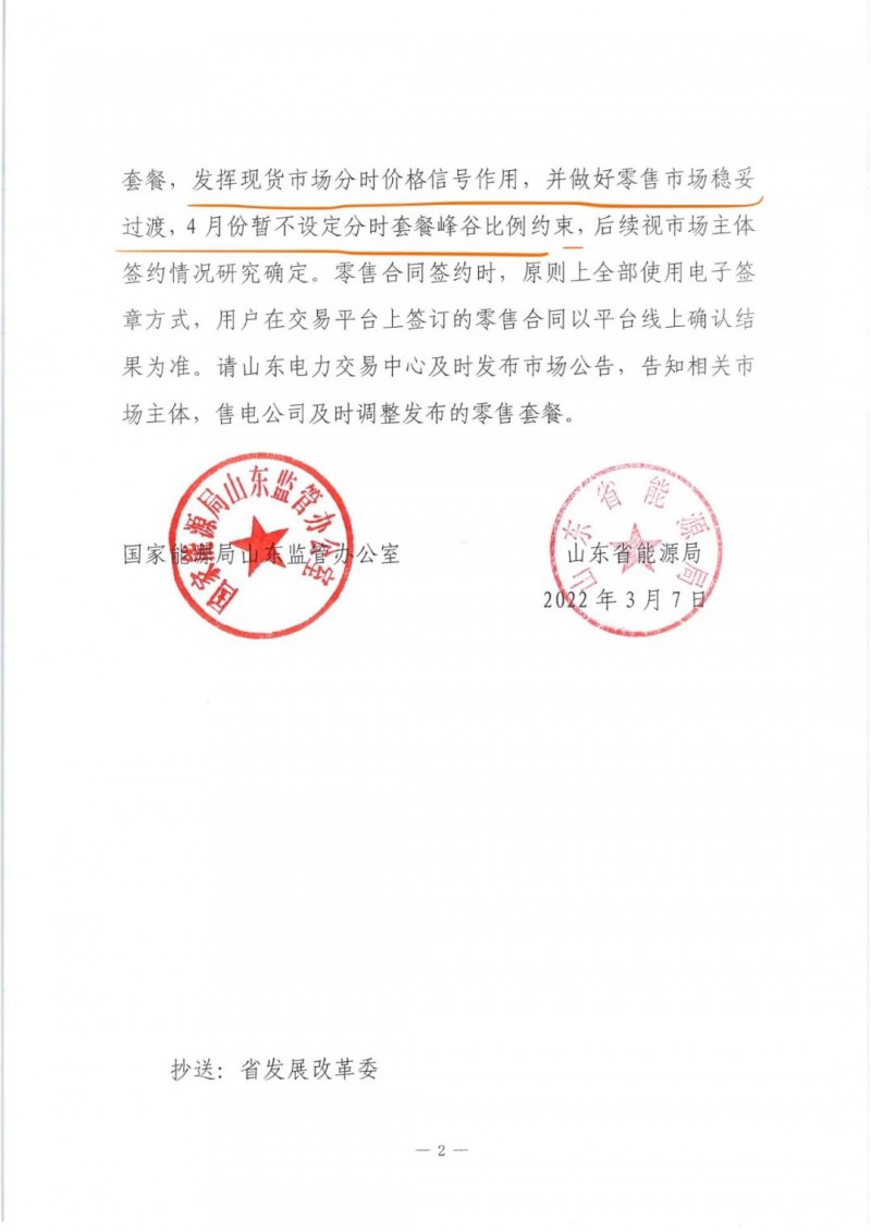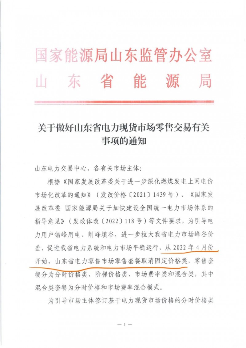 在此次交易公告發(fā)布之前,本月另一份文件的印發(fā)也相當(dāng)重要:3月7日,山東政府發(fā)布《關(guān)于做好山東省電力現(xiàn)貨市場零售交易有關(guān)事項的通知》,宣布從4月起,山東零售市場取消固定費率套餐,引導(dǎo)市場主體簽訂基于山東現(xiàn)貨市場價格的分時價格類套餐。(下圖)