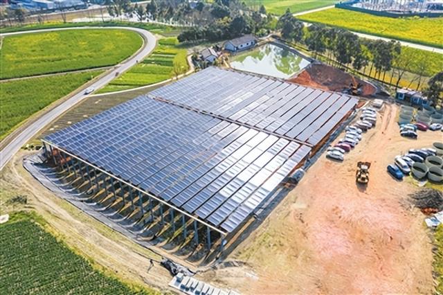 記者看到,在魚塘旁邊還有一座兩層樓的建筑正在進行外立面裝修。據(jù)了解,這是“漁光一體”項目的配套設(shè)施,這棟綜合樓包含“鄉(xiāng)村振興+碳中和”科普教育展示基地、多功能會議室、頂層觀景平臺等,建成后將集科普展示、會務(wù)、觀景、研學等功能于一體。天府農(nóng)博園管委會相關(guān)負責人表示,項目建成運營后,將成為開展碳中和與鄉(xiāng)村振興科普研學活動的基地,讓更多市民、游客近距離感受光伏發(fā)電與智慧養(yǎng)魚是怎樣結(jié)合在一起的。成都日報記者 李娟