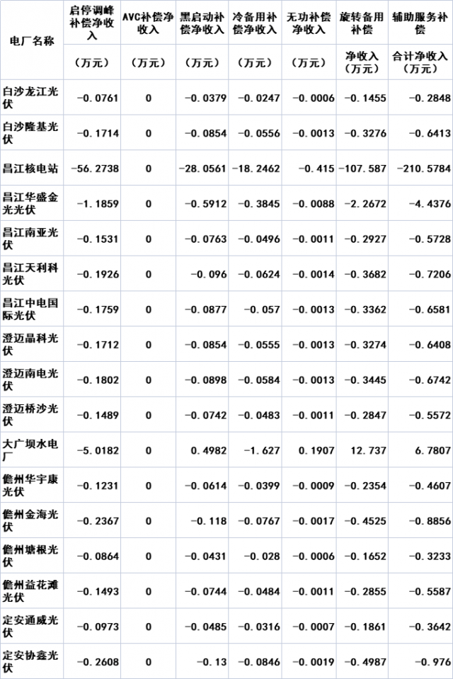 2.2022年6月海南統(tǒng)調(diào)電廠輔助服務(wù)補償結(jié)果