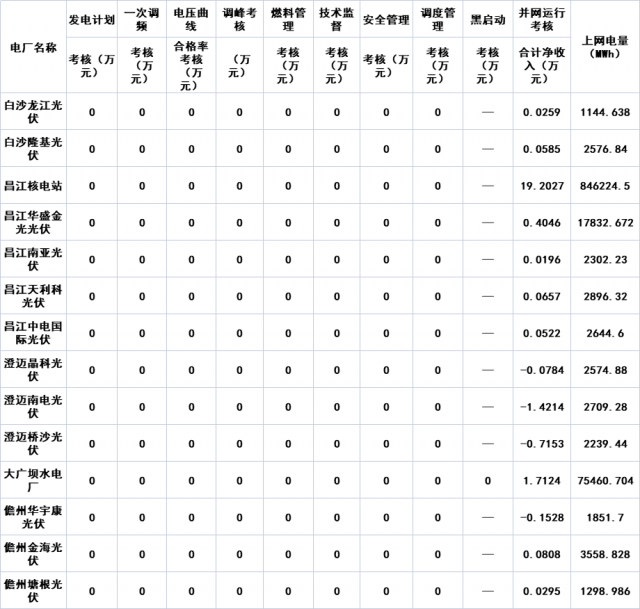 關(guān)于發(fā)布海南統(tǒng)調(diào)電廠2022年6月并網(wǎng)運行考核及輔助服務(wù)補償結(jié)果的通知