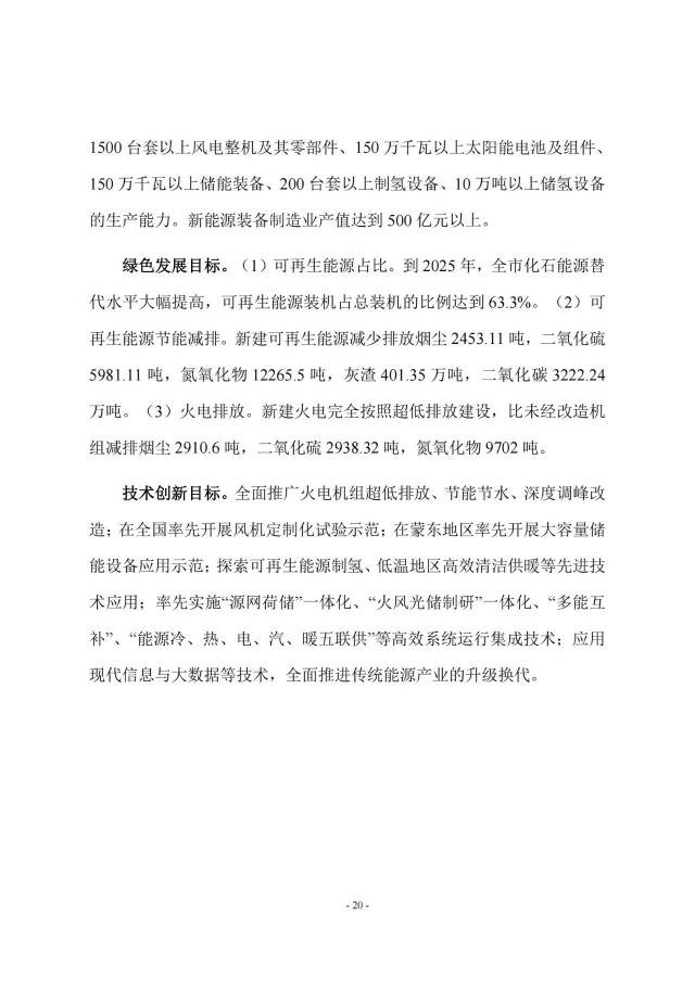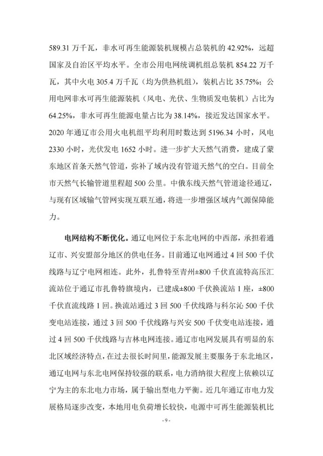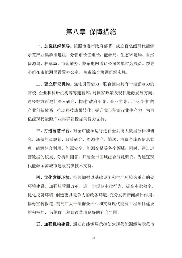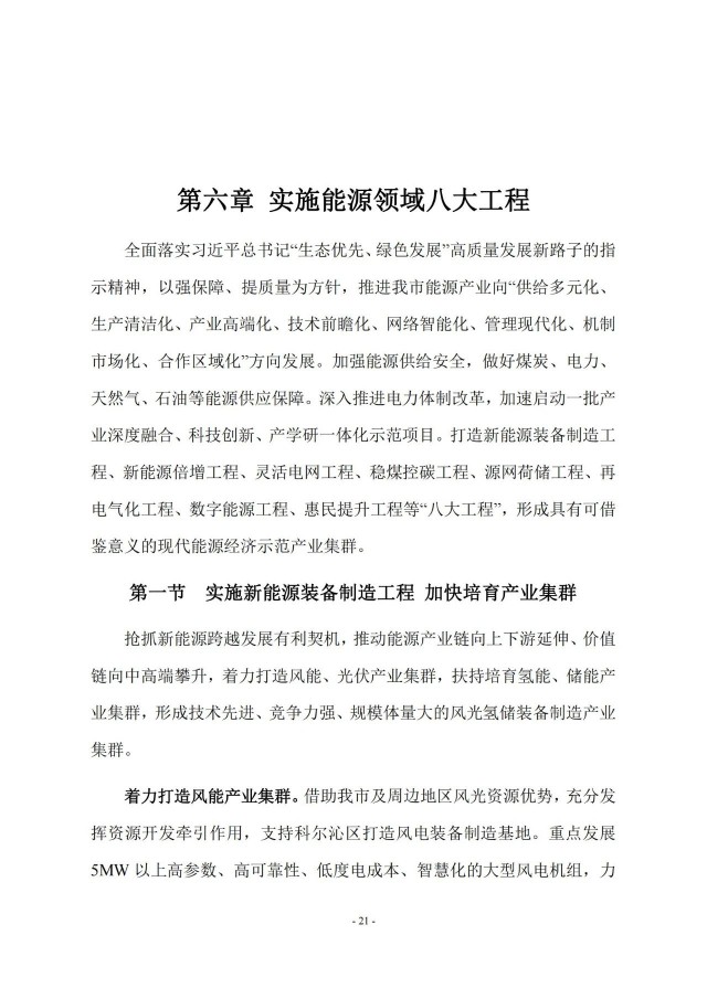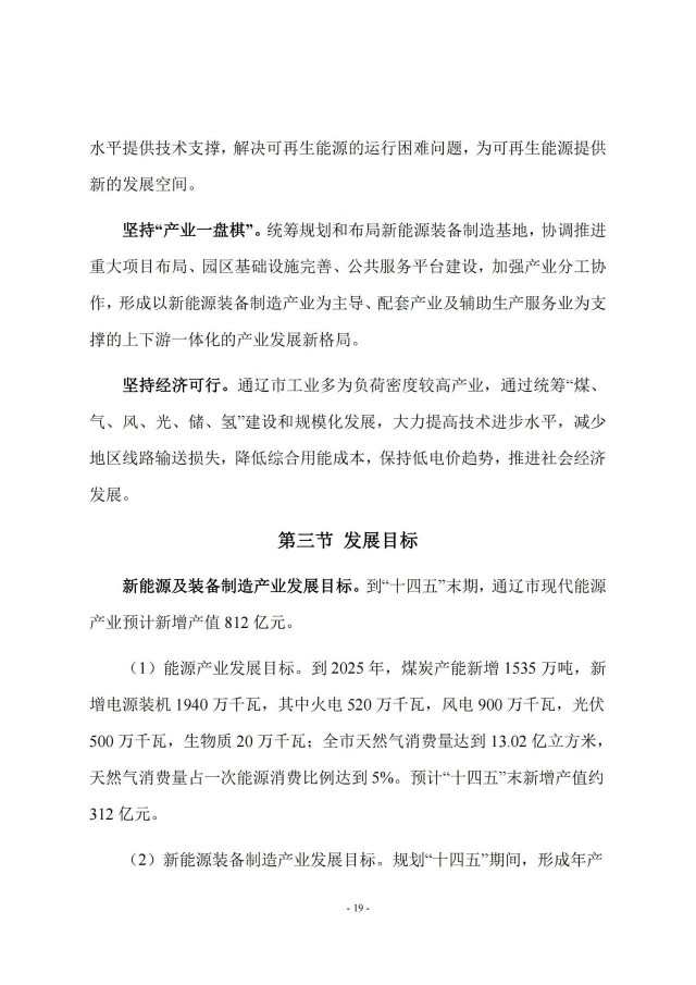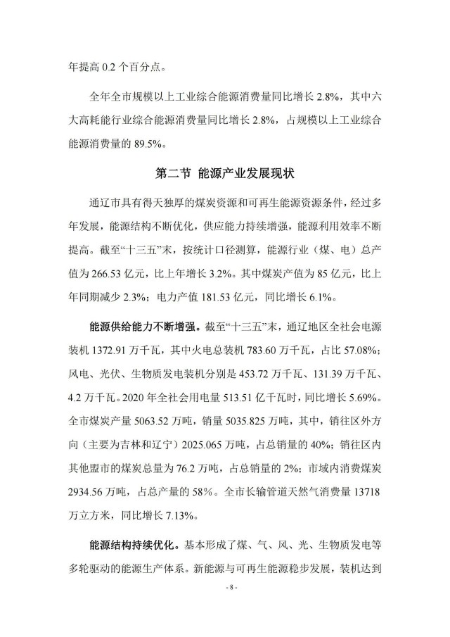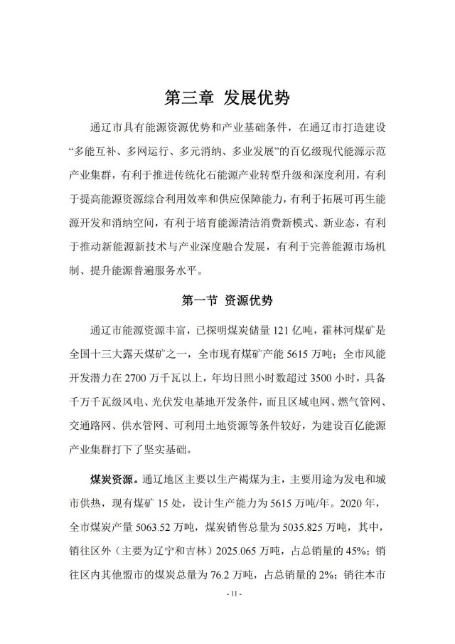 近日,通遼市能源局印發(fā)《通遼市百億級現(xiàn)代能源示范產(chǎn)業(yè)集群發(fā)展規(guī)劃》,規(guī)劃到2025年,全市煤炭產(chǎn)能新增1535萬噸,新增電源裝機1940萬千瓦,其中火電520萬千瓦,風電900萬千瓦,光伏發(fā)電500萬千瓦,生物質(zhì)發(fā)電20萬千瓦。
