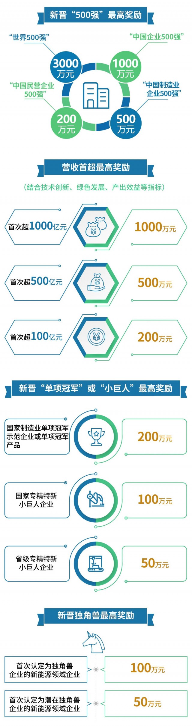 對獲得國家、省標準創(chuàng)新貢獻獎一等獎的企業(yè),最高獎勵50萬元。